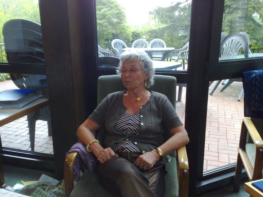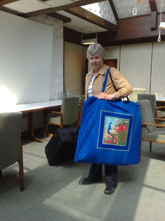 Frau Helga B....... bei der Abreise. Klöpplerinnen reisen immer mit leichtem Gepäck